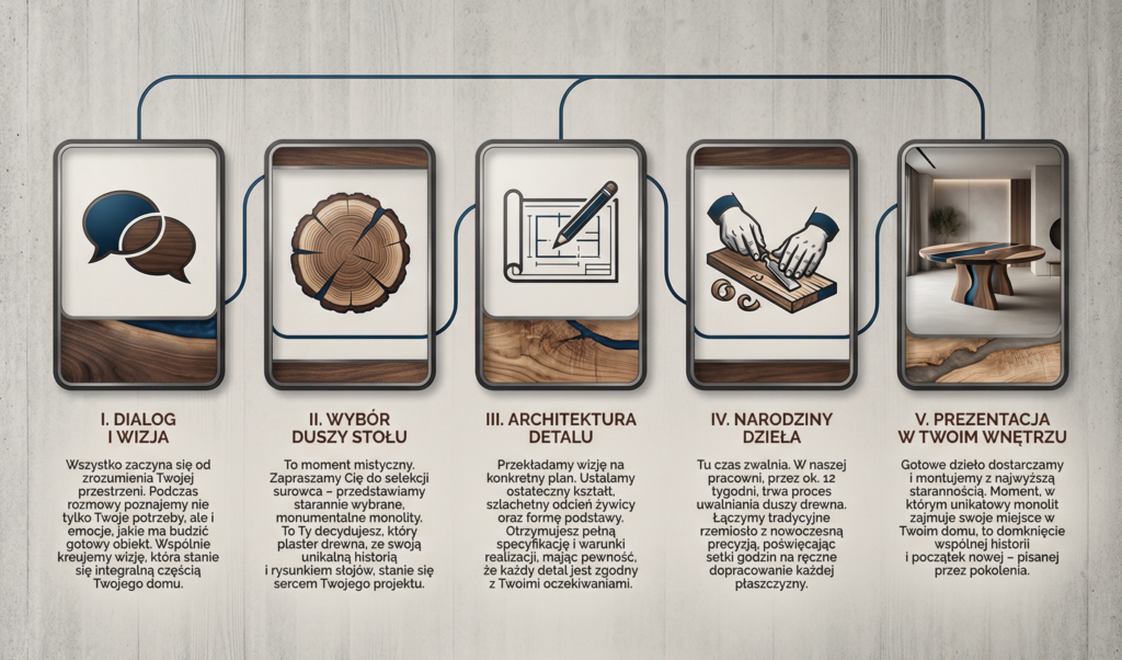 Prawdziwy luksus to przestrzeń, która dostarcza spokoju i karmi zmysły. W świecie powtarzalnych form, kreowanie indywidualnego otoczenia staje się najwyższą formą ekspresji. Wychodzimy naprzeciw tym, którzy zamiast gotowych rozwiązań, wybierają dialog z naturą i szlachetność rzemiosła. Nasza usługa tworzenia na zamówienie to proces, w którym Twoja intuicja spotyka się z naszym wieloletnim doświadczeniem. Nie tworzymy mebli – wspólnie z Tobą powołujemy do życia obiekty, które budzą głęboki podziw i zostają w rodzinie na pokolenia.